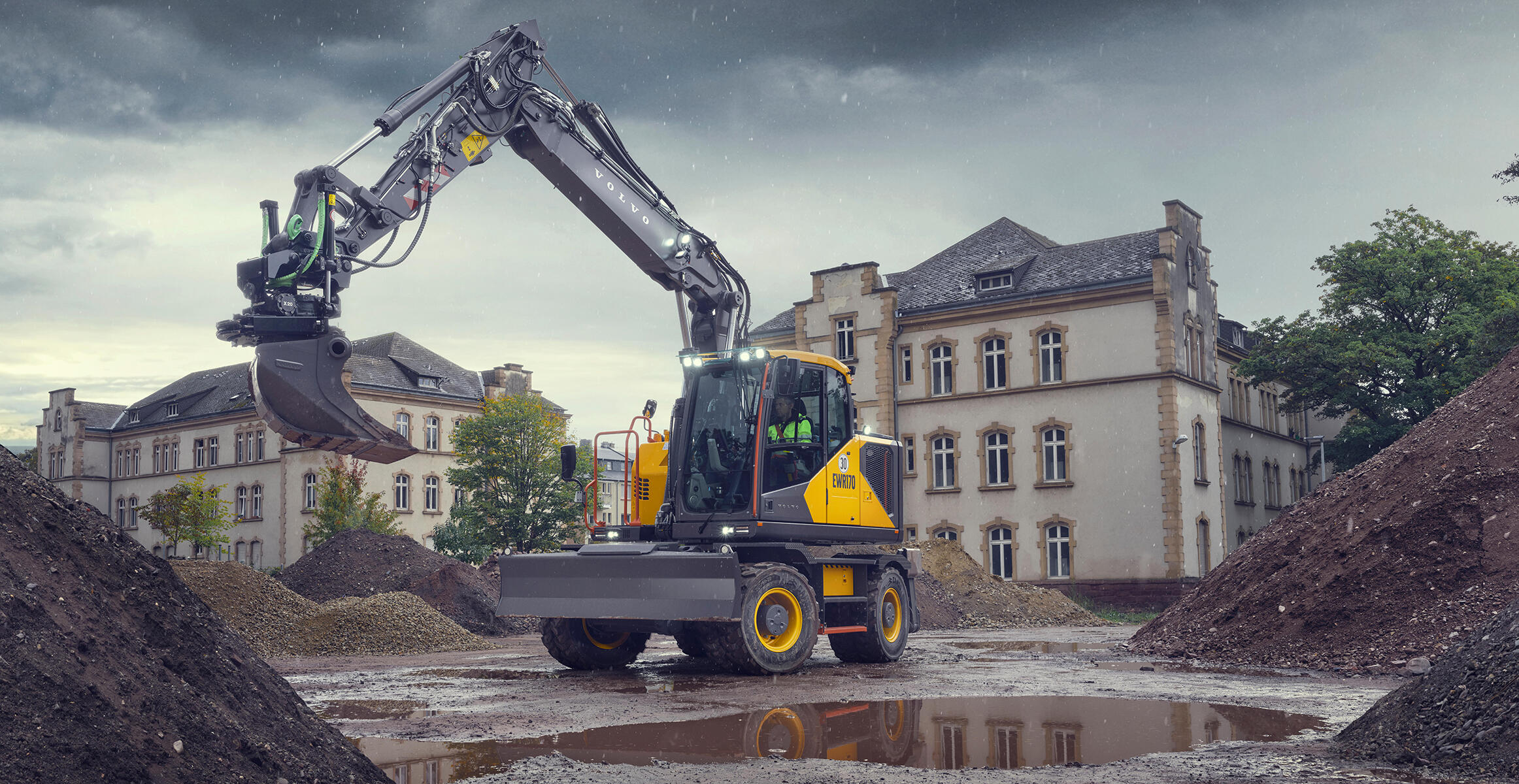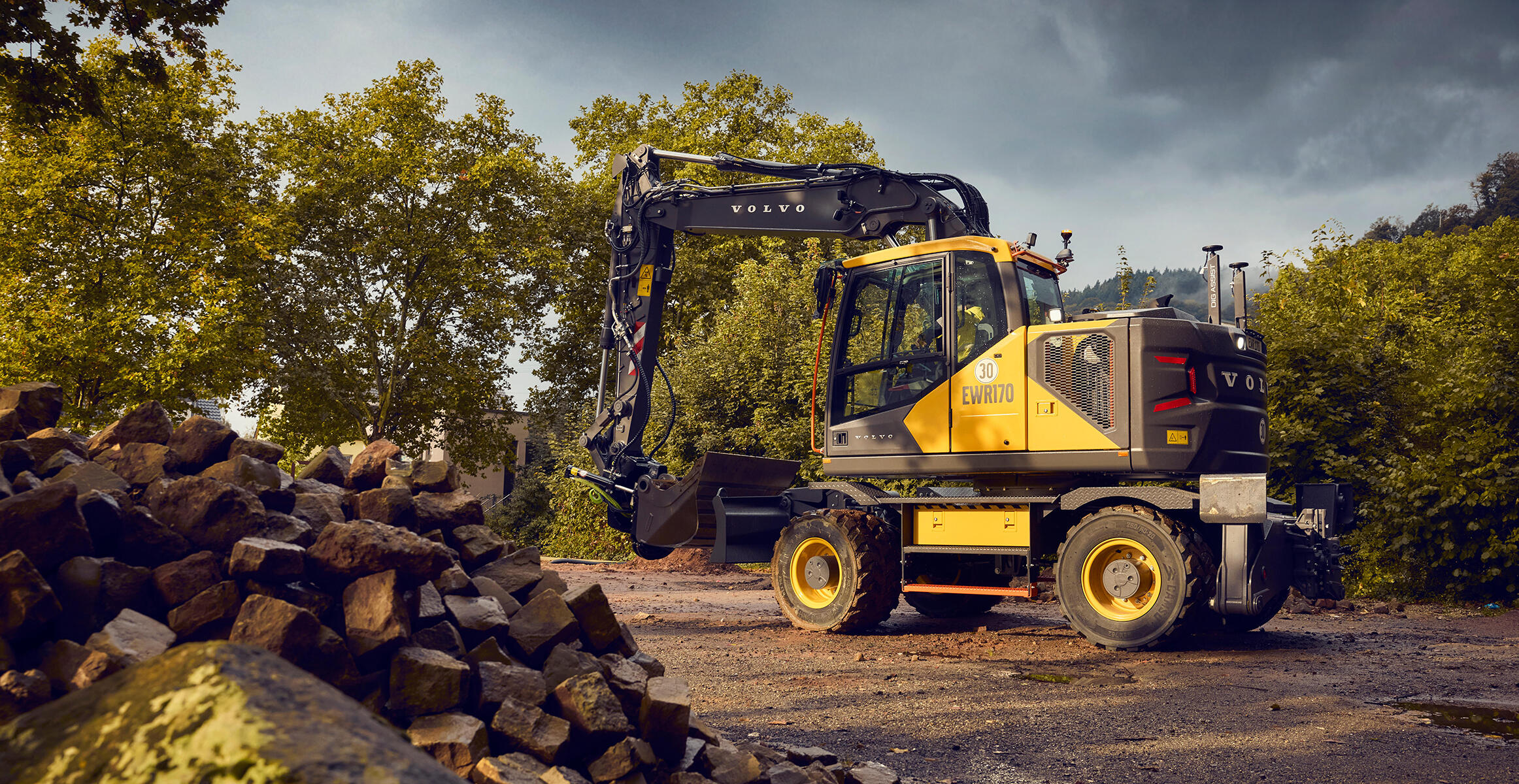 Con el radio de giro trasero más corto de su categoría, la mejor excavadora de ruedas de 17 toneladas del mercado es todavía mejor con la nueva excavadora de ruedas EWR170.