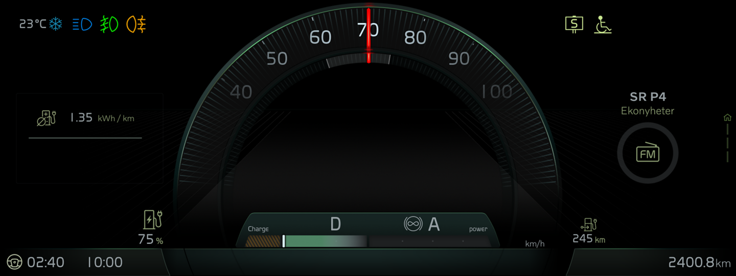 La electromovilidad de Volvo Buses siempre se ha traducido en un trayecto suave y silencioso, algo que se hace aún más evidente a velocidades más altas y en distancias más largas. Un chasis equilibrado con un centro de gravedad bajo y un peso no suspendido mínimo, en combinación con una potente y, al mismo tiempo, suave cadena cinemática, garantiza una experiencia verdaderamente cómoda.